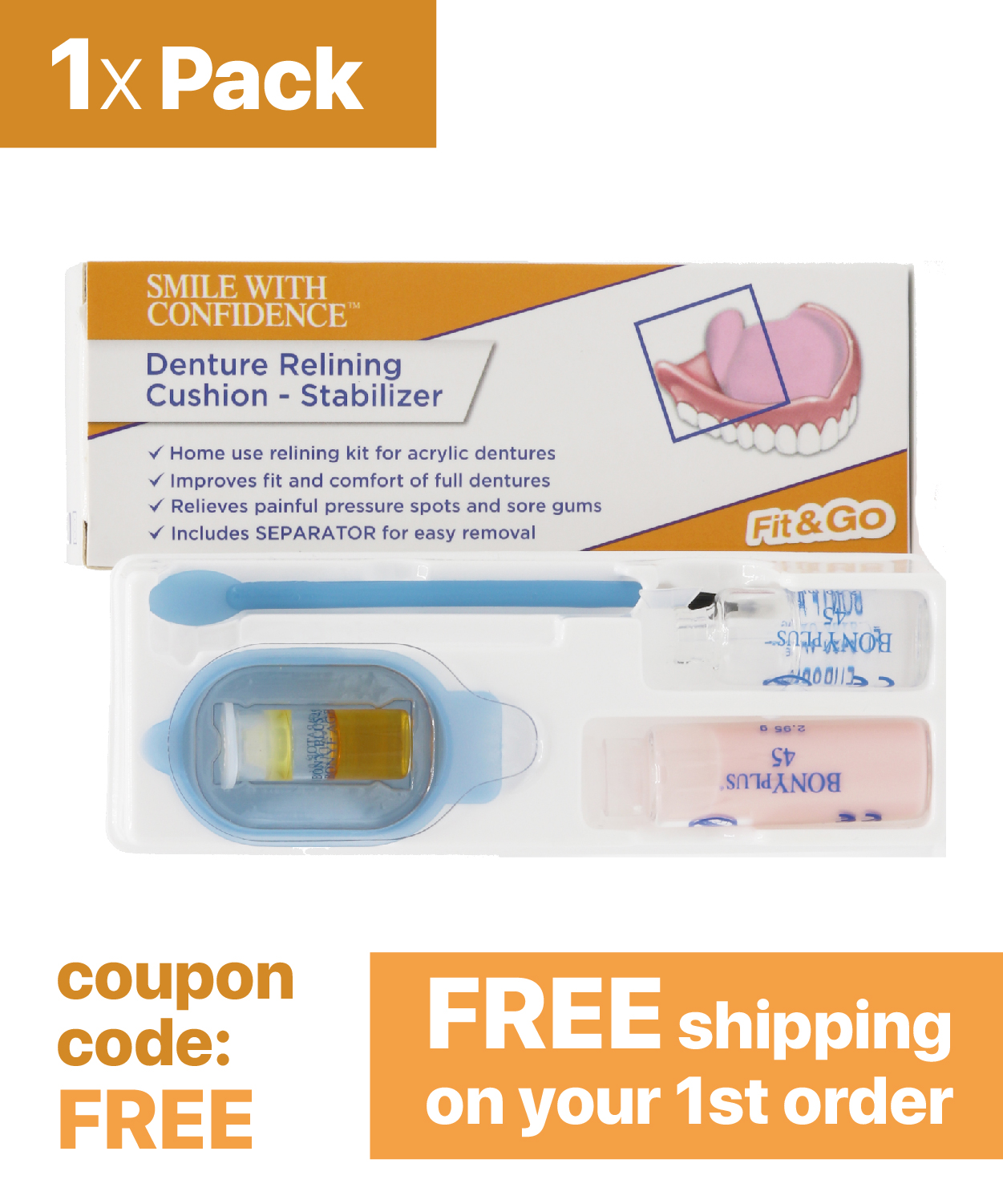 The Denture Relining Cushion is a product for ill-fitting dentures. While the shape of the denture remains static over time, the gums are continually changing shape. This can lead to a misalignment between the dentures and the gums, which can be a source of pain and discomfort. The Denture Relining Cushion acts like an adjustable soft layer between the denture and the gums creating a buffer, cushion like effect between them, giving the user a perfect fit for up to 30 days whilst still maintaining its soft consistency.